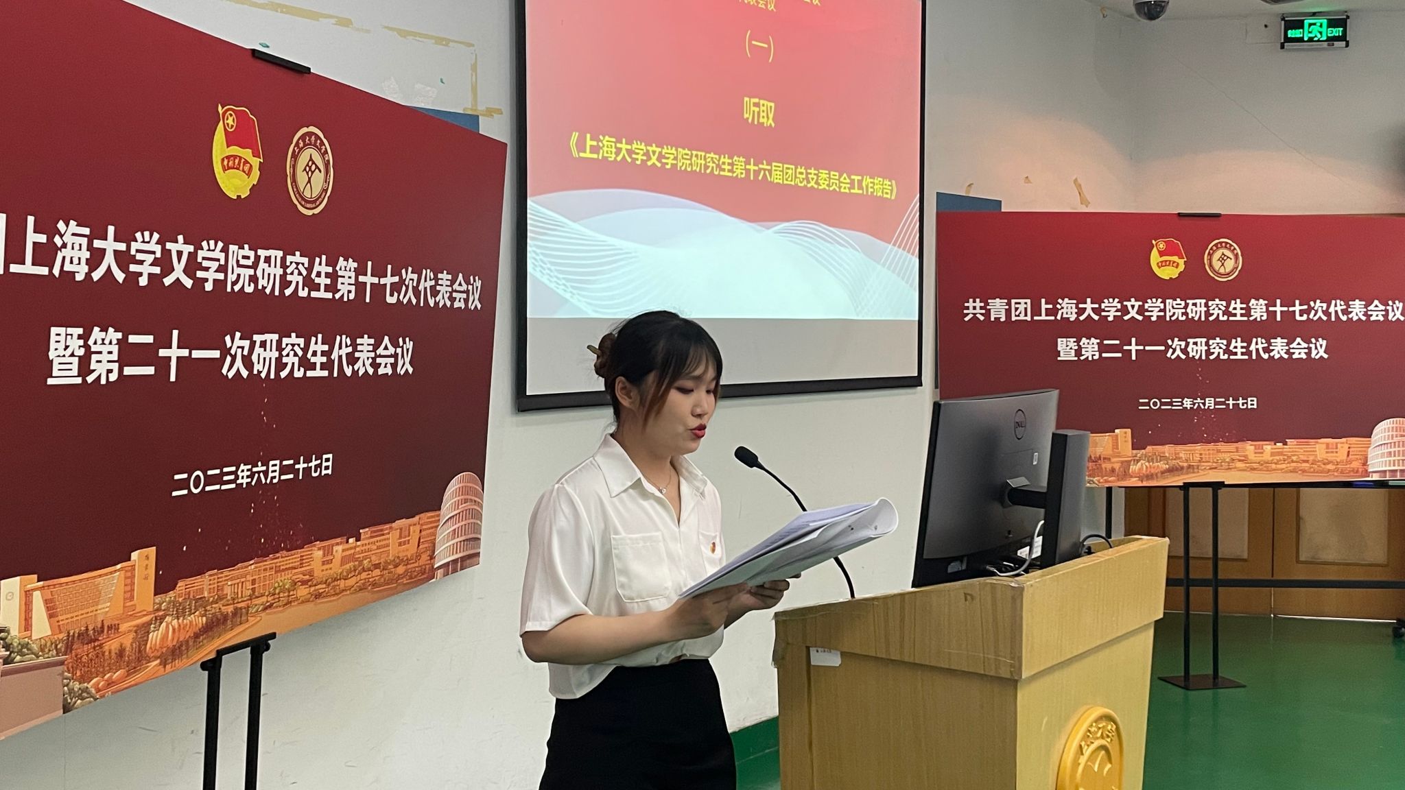 2023年6月27日上午,共青团6165cc金沙总站检测中心研究生第十七次代表会议暨6165cc金沙总站检测中心第二十一次研究生代表会议在上海大学J101顺利召开。6165cc金沙总站检测中心党委副书记、副院长丁佳蒙,6165cc金沙总站检测中心团委书记、研究生辅导员宋亚丽,6165cc金沙总站检测中心团委委员、研究生辅导员刘菁、卜敏,上海大学研究生联合会主席团成员刘含,上海大学文信学院研究生联合会执行主席余孟以及来自学院各个专业的33位研究生代表出席本次大会。会议由6165cc金沙总站检测中心研究生联合会执行主席张佳霖主持。